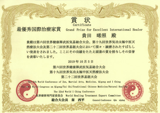 貴田の参加は今年で3回目ですが、過去の大会でも「最優秀気功師賞」(2010年大会)と「最優秀治療家賞」(2013年大会)を受賞しています。