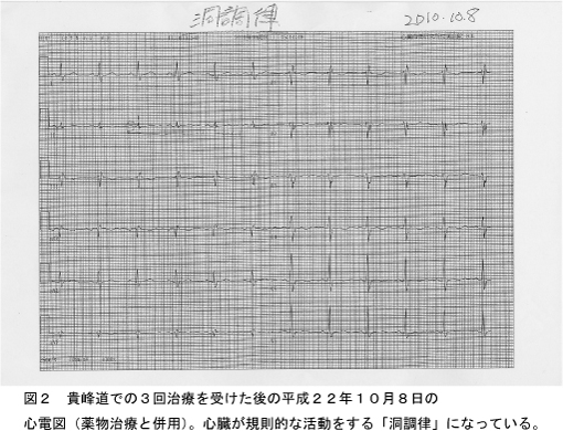 「過剰な電磁気エネルギーを取り除き、生命エネルギーの場を正す」というごしんじょう療法の理論は、極微の電気で動く心臓の機能を回復させたことを的確に説明している。
