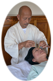 La terapia Goshinjo utilizza due bastoncini d'oro che vengono fabbricati appositamente. Non si prende assolutamente nessuna medicina per via orale. Strofinando e spingendo i bastoncini contro il corpo, i pazienti affetti da dolore acuto di lunga durata, da eczema, ed anche dalla perdita improvvisa dell'udito, che sono stati sottoposti a un trattamento di steroidi a lungo termine, si sono sentiti meglio. Anche se pensiamo che la medicina moderna curi tutto, credo che dobbiamo ammettere umilmente che anche con le migliori medicine non riusciamo a curare tutte le malattie. Inoltre, con la terapia Goshinjo non ci sono effetti collaterali.